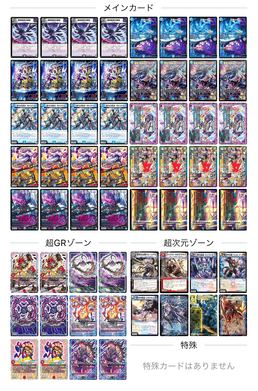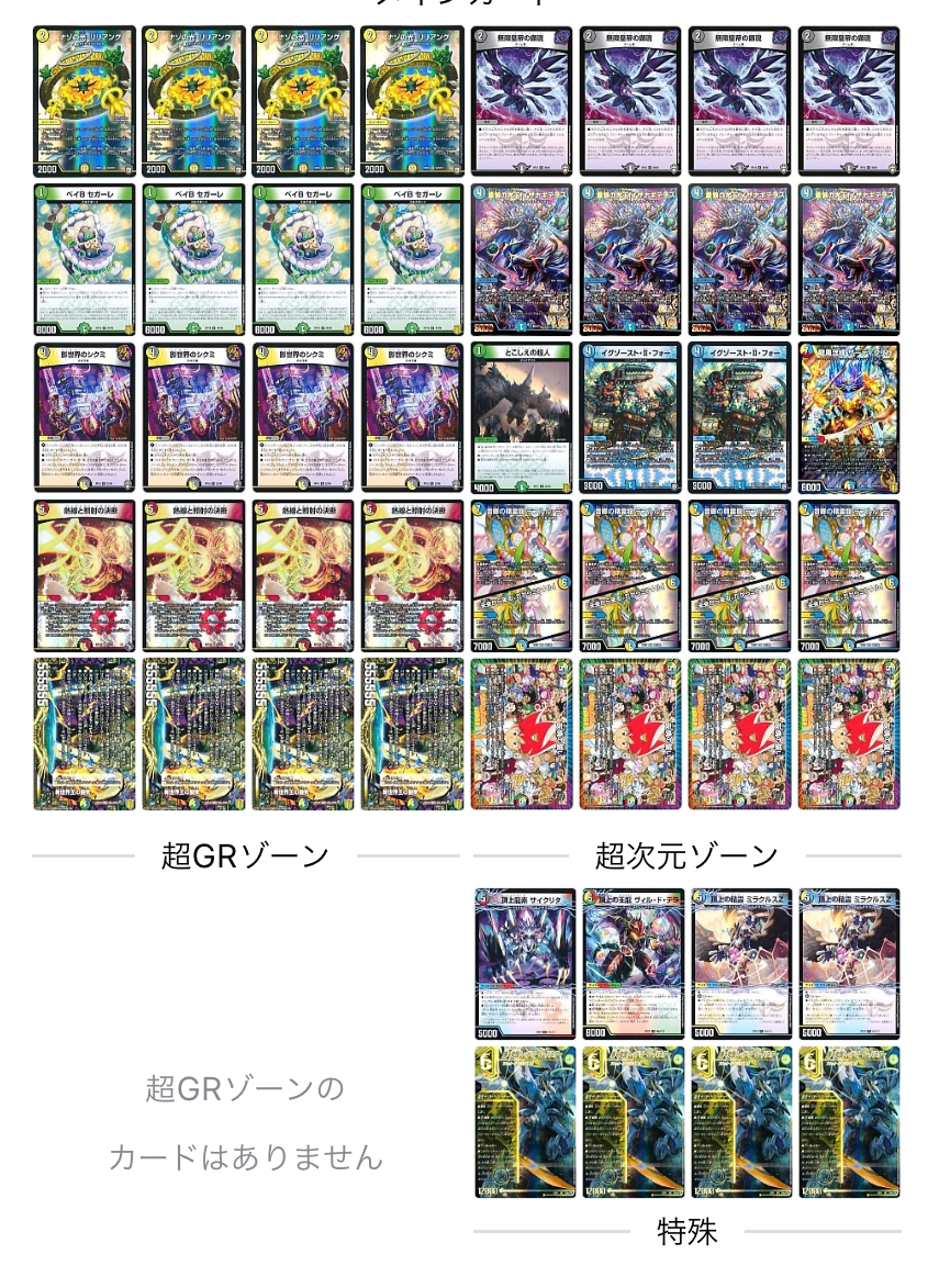 なお他のデッキ同様、メタクリーチャーもそんなに存在できない気配がしたので除去は全抜きです。