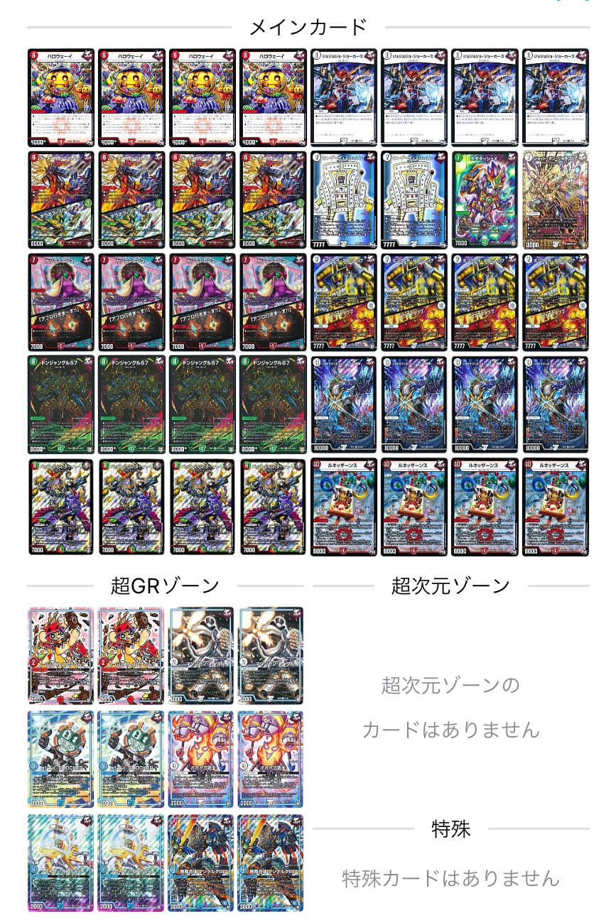 動きとしては4コスト下がったハロウェーイでコスト10以下のクリーチャーを踏み倒し連鎖、スロットンで加速させダダダッシュで呪文を封じながらフィニッシュといった感じ。